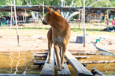 A street thai dog at the beach the backside of Asokaram temple in samutprakarn province, Thailand