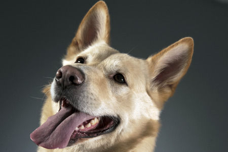 Portrait of a beautiful dog on a brown background. Studio shot.