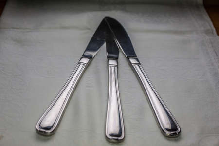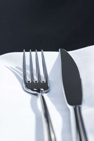 cutlery on a white tablecloth, selective focus