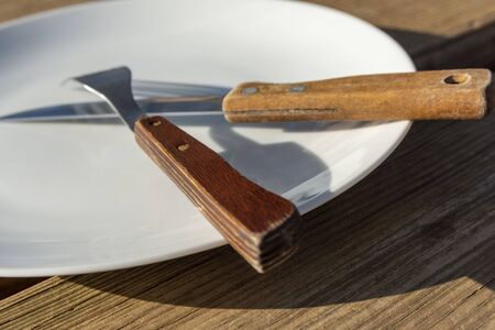 Empty plate with knife and fork - food outside the house project