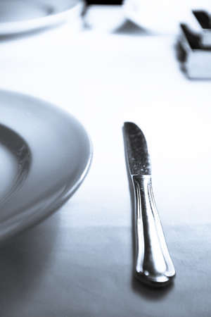 Knife on restaurant table. No people