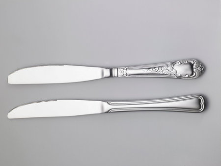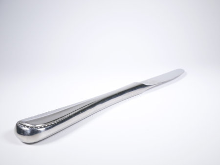 Handheld Shiny Metallic Stainless Steel Eating Cutlery Knife for Kitchen Appliances in White Isolated background