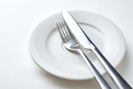 Fork and knife on a white plate