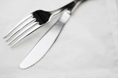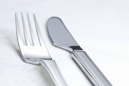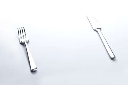 Fork and knife on white background tabletop