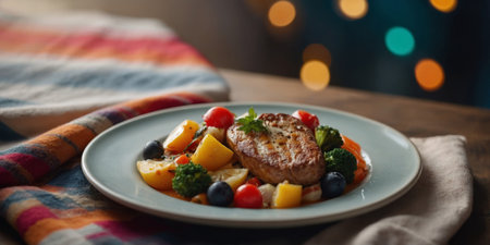 AI Generated. A plate of food with a colorful blanket underneath it
