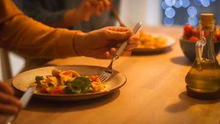 Delicious Pasta on the Plate. Professional Cooked Pasta Dish in the Restaurant or for Romantic Dinner Meal at Home. Close-up Shot