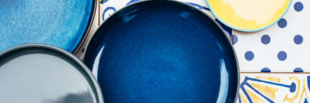 Plates on tile background