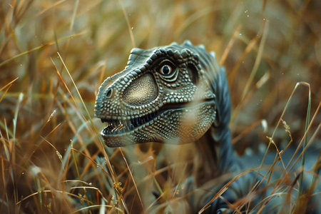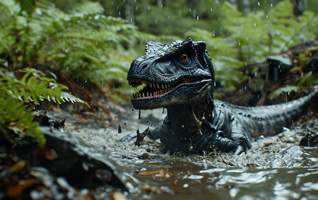 Dynamic dinosaur model captures attention in a vibrant jungle setting, highlighting details and colors that evoke a sense of adventure and imagination.
