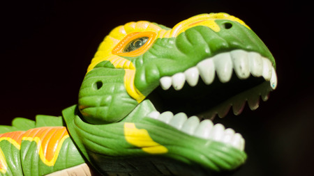 Tyrannosaurus Rex plastic model, closeup of photo.