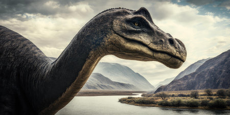 A large Brontosaurus Dinosaur against a cloudy sky