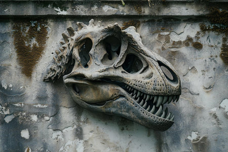 Skull of a Tyrannosaurus rex. Photographic Detail of a Huge Dinosaur dinosaur skeleton