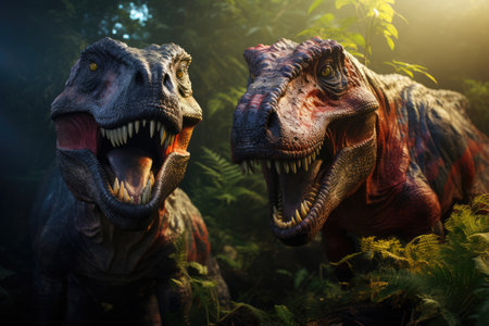 Tyrannosaurus Rex and Prehistoric Dinosaurs in the park