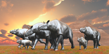Paraceratherium Herd - Paraceratherium was an Indricotherium herbivore that lived in Eurasia during the Eocene Period.