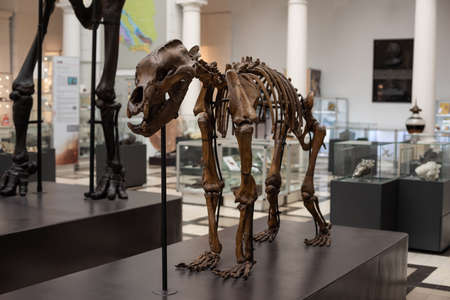 Warsaw. Poland. 03.21.2022. Skeleton of a cave bear in Geological Museum of National Research Institute.