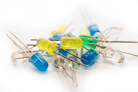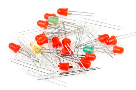 Colorful light emitting diode on white background. Active electronic element. Electronics science