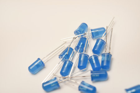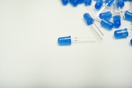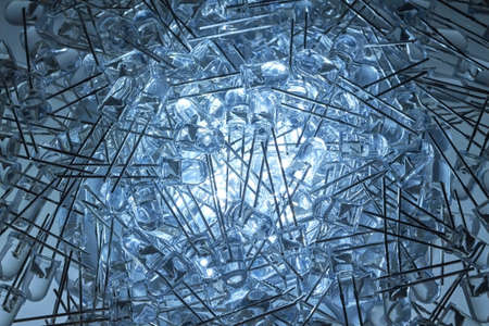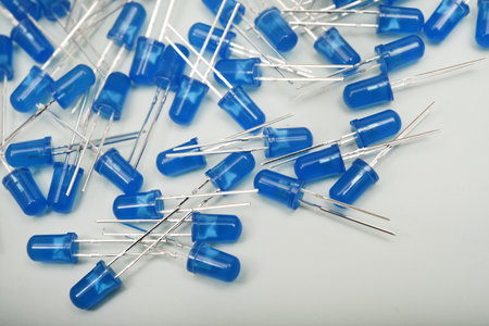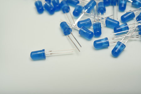 Blue LED lamps. A scattering of electronic elements. Light-emitting diodes.