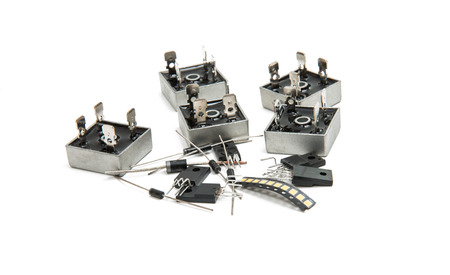 Bipolar transistors on a white background. Semiconductor devices. Microelectronics.