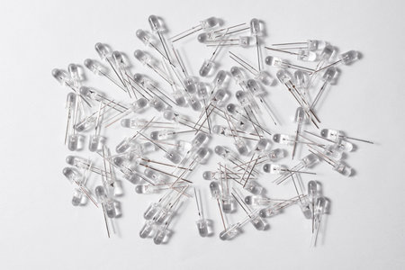 Many white diodes on a white background. LEDs for illumination. View from above.