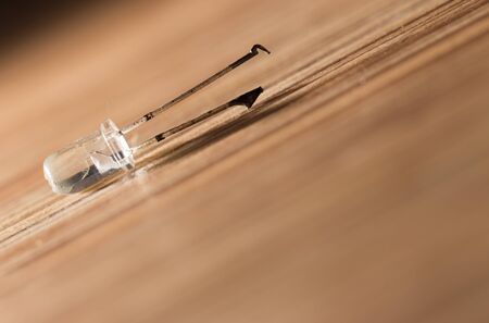 Led lamp lectronic components isolated on white background. Shot of old led diod with power wires.