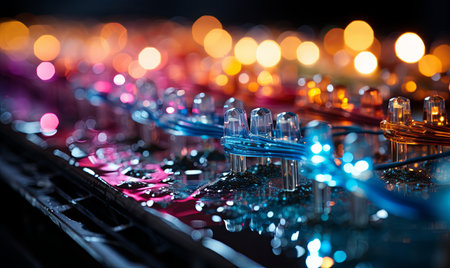 Close Up of Circuit Board With Multiple Lights, Nano-transistors on a microchip, AI Generated