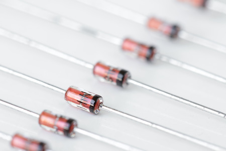Various SMD diodes, above electronic schematic designer. Electronic component