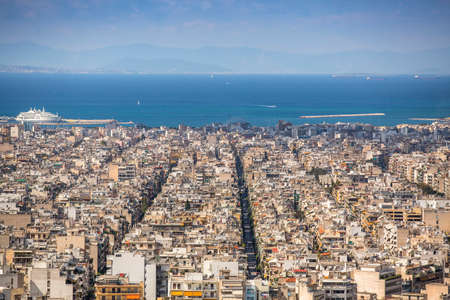 Views of the Aegean sea and streets labyrinth of Greek capital Athens, Greece.