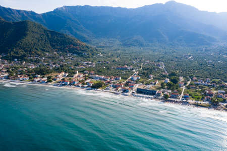 Landscape with amazing Golden Beach and Skala Potamia on Thassos, Aegean Sea, Greece