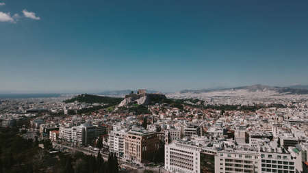 Downtown of Athens. Acropolis of Greece. View over the city from above. white city.