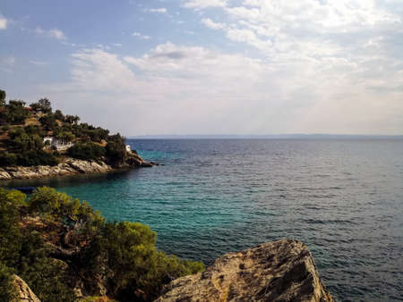 Coast in Sithonia, Halkidiki, Northern Greece, toned image