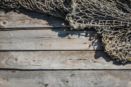 Old fishing net on a rotten wooden pier
