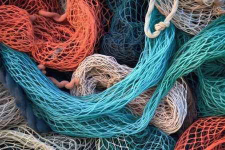 Pile of fishing nets. Detailed pattern and texture.