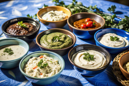 Explore the vibrant array of fresh dips and sauces made from herbs and vegetables, perfect for enhancing any meal with flavor and color.