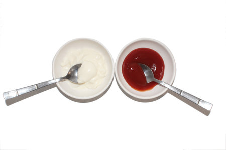 Ketchup and mayonnaise sauce on a white background