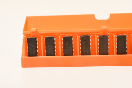 Microchips in a plastic case. Integrated circuits in a plastic storage case. Electronic chips.