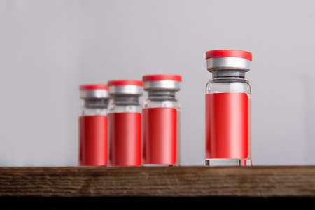 Empty glass jars of coronavirus vaccines. No people