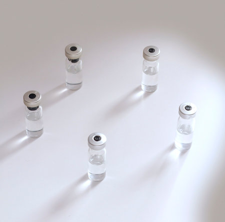 Covid-19. Five vials of unbranded vaccine ready to inject