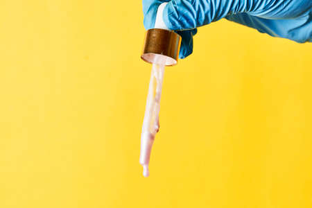 The texture of serum or oil with a pipette on a beige background.