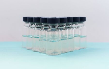 Glass ampoules with medicinal product, vaccine for medical and cosmetic injections