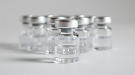 Empty glass jars of vaccines. No people