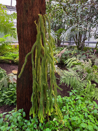 green Huperzia fern in nature garden