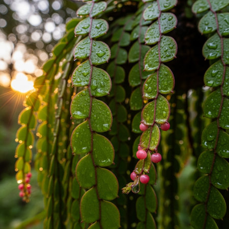 Generative AI : Hatiora rosea or Rose Easter Cactus succulent plant pink flowers blooming