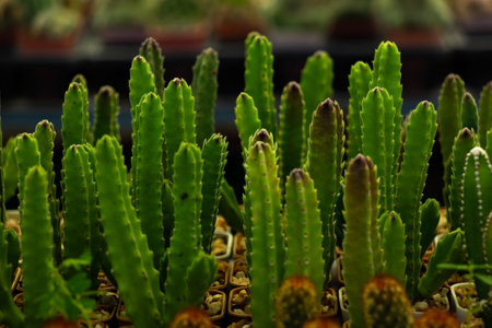 Small cactus in plastic pots Sorted by macro focus.