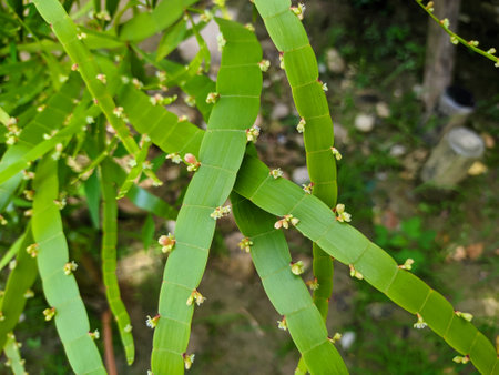tree trunk and leaves of rhipsalis baccifera cactus also known as Spaghetti cactus
