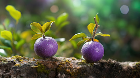 Purple star apple: whole and sliced vibrant fruit with seeds exposed