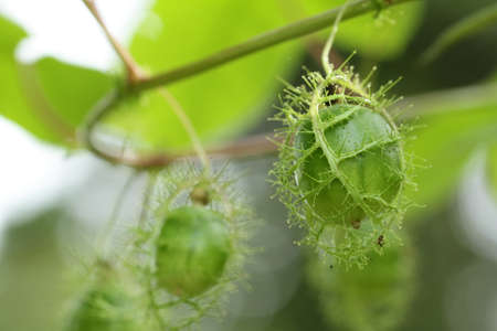 The beauty of the color of little gourd fruit or baby watermelon that ripens on the tree. This climbing plant has the scientific name Coccinia grandis.
