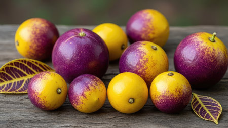 photograph of a delicious passion fruit with exquisite studio lighting, set against a rustic wood background. Perfect for food enthusiasts and design projects. Ample copy space available