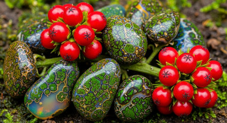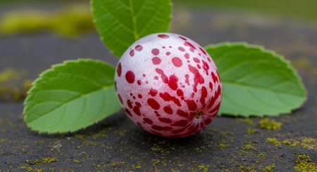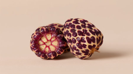 Capture the beauty of a unique fruit with vibrant patterns and textures on a soft neutral background, ideal for food photography, culinary art, and natural beauty projects.