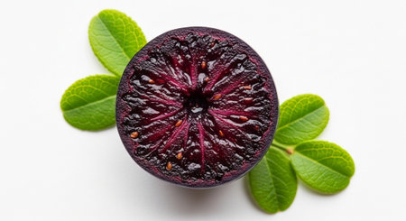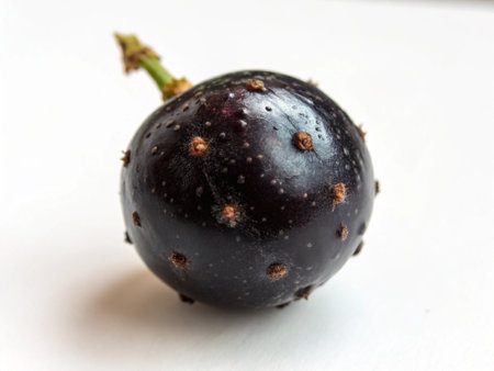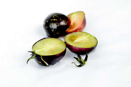 Commercial close-up of the exotic Brazilian fruit, jabuticaba. Clean and healthy display on a white background for food and lifestyle projects