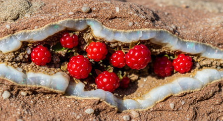 A collection of fresh red fruits arranged on a marble surface, showcasing vibrant colors and textures. Ideal for health, culinary, and food presentation themes.