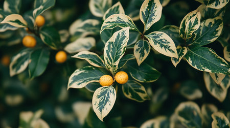 Green leaves with yellow kumquat in the botanical garden